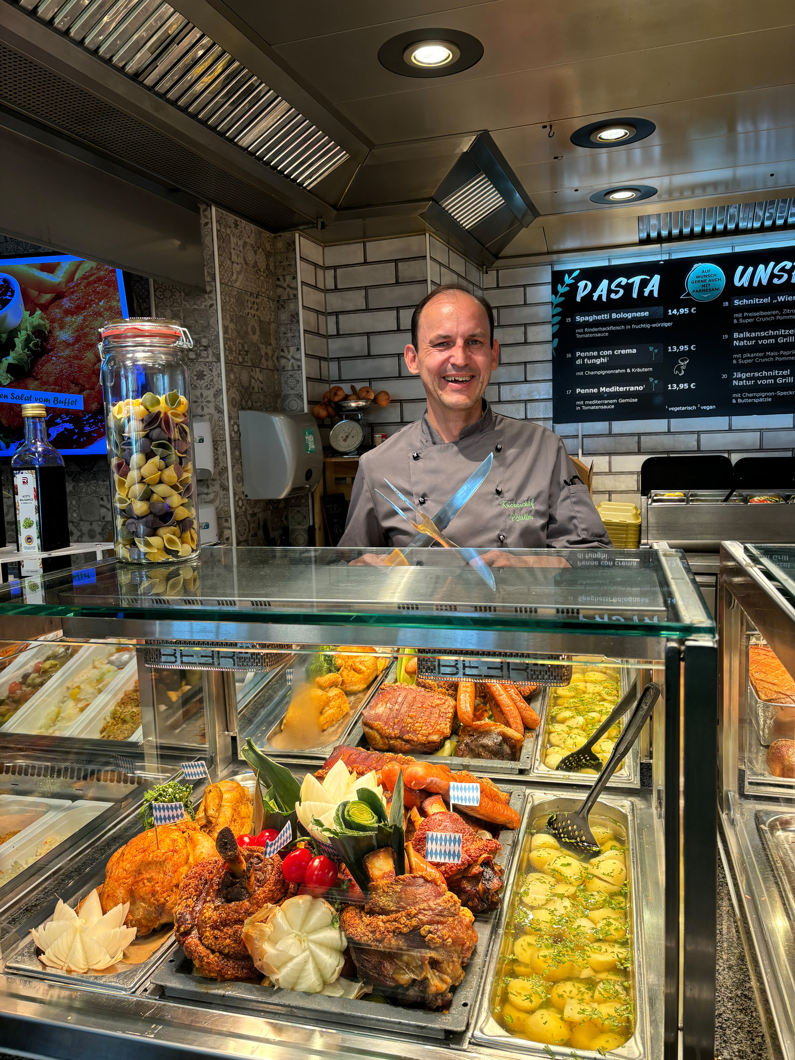 The restaurant "Auszeit" with its 300 seats offers guests Bavarian-American cuisine with always fresh roasts from the rotary grill. Our friendly waiters serve from 4 pm to midnight. In between there is something for every taste in self-service.