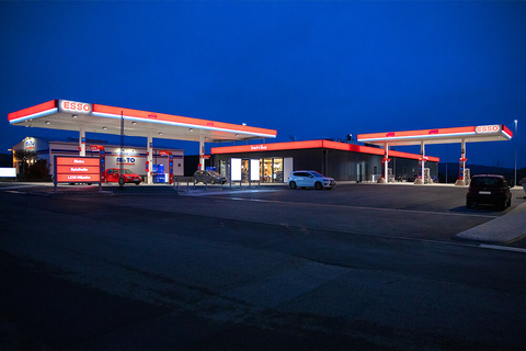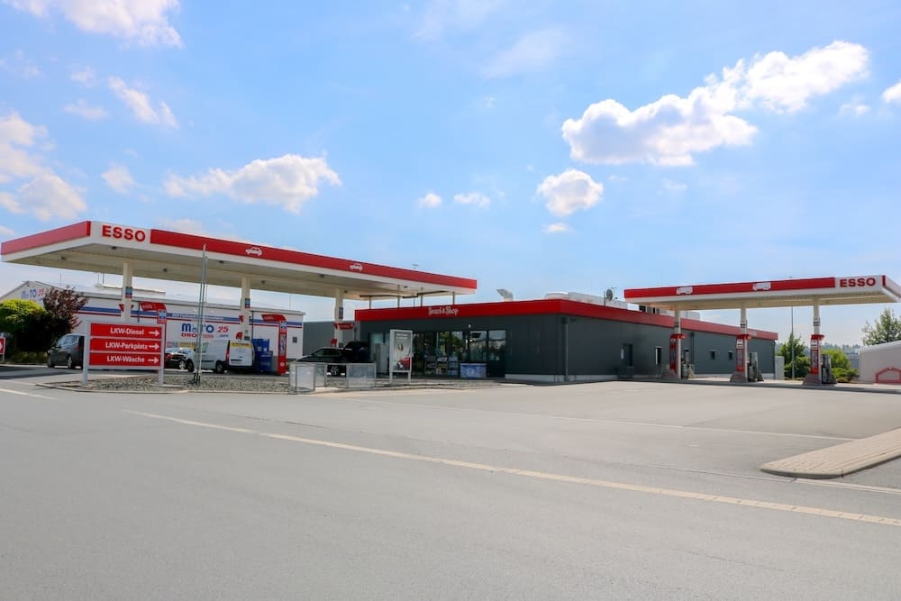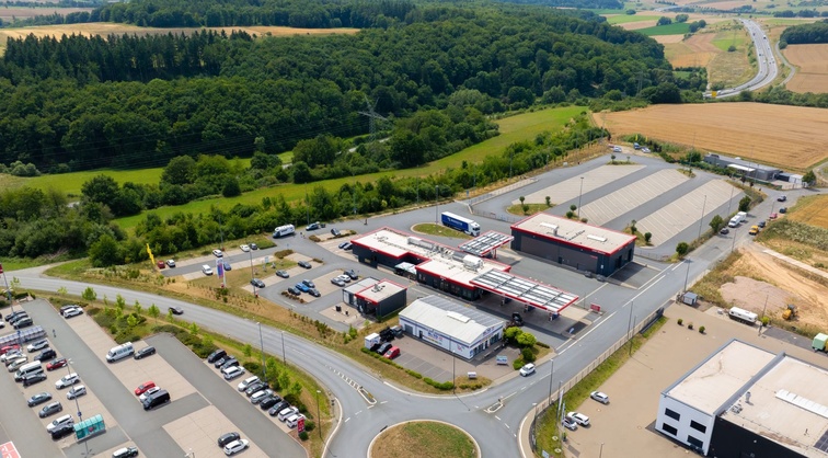 The motorway service area in the Merenberg industrial estate, built in 2018, is located directly on the four-lane B49. It offers a wonderful view of the medieval Merenberg Castle.