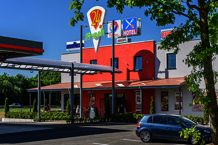 Im großen Gastronomiebereich können die Gäste zwischen einem CAFÉINO-Restaurant mit leichten und gesunden Gerichten, einer SUBWAY-Filiale, dem Burger-Restaurant BURGER’Z sowie dem PAULANER Biergarten mit Aussichtsterrasse und Lounge-Bereich wählen. Das 24-Team verwöhnt mit Top-Service zu einem hervorragenden Preis-Leistungs-Verhältnis. Gepflegte Sanitäranlagen, eine moderne Tankstelle und ein umfassend sortierter Reiseshop sind selbstverständlich.
